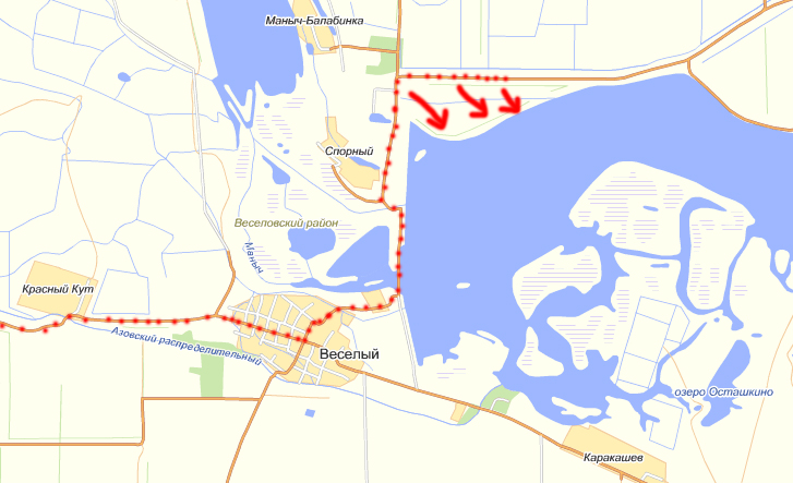 И так, мы расскажем Вам про одно место, которое большинство рыбаком любителей и профессионалов знают давно. Место это Маныч, вернее Маныческое водохранилище рядом с хутором Веселый. От Ростова х. Веселый находится в 100 км. , добираться на машине легко, Вы выезжаете на трассу М4 дон (через Ворошиловский мост) и далее примерно через 10 км. будет развязка на Волгодонскую трассу (около развязки будет заправка). После того как Вы съехали с М4 Вы просто едете по главной и через примерно 6--70 км. будет указатель на Веселый, поворачиваете на право и едете до х. Веселый, после того как Вы заехали в хутор то проезжайте до середины хутора и доезжаете до перекрестка двух основный дорог хутора и поворачивайте налево, после выезжаете из хутора и проезжаете по дамбе, далее едете по трассе примерно километра 3-4 и сворачивайте вправо на любую дорогу и ищите берег водохранилища.